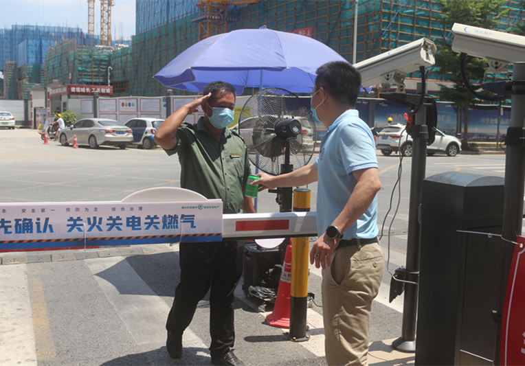 咬定青山不放松,立根原在破巖中。 千磨萬擊還堅勁,任爾東西南北風(fēng)。 ——清代鄭燮的《竹石》 炎炎酷暑,疫情再起,鴻運物業(yè)保安員們站出崗?fù)ぃ斨邷仳灤a排查,用“咬定青山不放松”的精神,堅決踐行防疫措施;用“千磨萬擊還堅勁”的定力,堅守小區(qū)“安全門”。7月26日上午,鴻運物業(yè)總經(jīng)理陳喜祥、黨支部書記陳文遠(yuǎn),同高層代表、黨員代表,前往鴻運物業(yè)服務(wù)的小區(qū),慰問一線保安員們。總經(jīng)理陳喜祥為保安員們送上飲料,一聲聲“辛苦了”道出對保安員工作的肯定和感謝。陳總要求各物業(yè)服務(wù)中心備齊解暑應(yīng)急藥品,定期開展“送清涼”活動,讓員工在辛勤的工作中感受到公司的關(guān)懷。鴻運物業(yè)黨支部書記陳文遠(yuǎn)與保安員握手交談,叮囑其多喝水、注意防暑,并切身感受其工作環(huán)境,和黨員代表們一同提出改良建議。在麒麟花園,我們遇到了黨員志愿者,陳文遠(yuǎn)書記對黨員志愿者的支持表示感謝。在人流量較大的沙頭舊村卡口,我們見到了保安員耐心指引無法打開健康碼的居民,保證卡口暢通不擁堵;在鴻德園卡口,我們見到了保安員為沒有佩戴口罩的老人送上口罩;在盛芳園卡口,我們見到了保安員耐心與外賣員溝通,為其解釋新下達(dá)的外賣員快遞員不能進(jìn)入小區(qū)的規(guī)定;在麒麟花園卡口,我們見到了保安員奔跑到烈日下,細(xì)致查驗車中人員的健康碼……因部分物業(yè)服務(wù)中心需協(xié)助處理居民核酸采樣,為不影響正常工作,未能一一前往慰問,在此向全體鴻運人道一聲“辛苦了”!